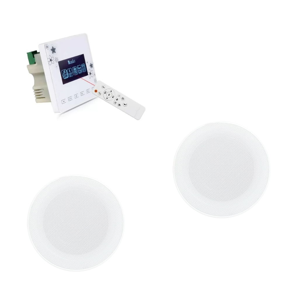 Комплект з 4х стельових колонок CELL 610 та пыдсилювача PAMP-60-BT CELL 610 Пасивна акустична трансляційна система. Тип монтажу Врізна, стельова. Конфігурація 1-смугова. НЧ 6,5”. Виводи трансформатора 100В 10 Вт/5 Вт. Опір 8 Ом. Чутливість 92 дБ. Діапазон відтворюваних частот 90 – 16 000 Гц. Матеріал корпусу АБС-пластик. Колір білий. Акустична система. Розміри 185x65 мм. Діаметр монтажного отвору 165 мм. Посадкова глибина 60 мм PAMP-60-BT Трансляційний підсилювач потужності 50Вт. Входи: 1 х мік., 1 х AUX. Виходи: 4-16 Ом, 100В, 1х AUX. Діапазон частот 40 Гц-18 кГц±0.5 дБ. Відношення сигнал/шум > 70 дБ. FM приймач, USB/SD програвач. Розмір: 300х230х120 мм. Вага 4 кг. Дане обладнання отримало сертифікат відповідності ДСНС України для використання в системах пожежного сповіщення.