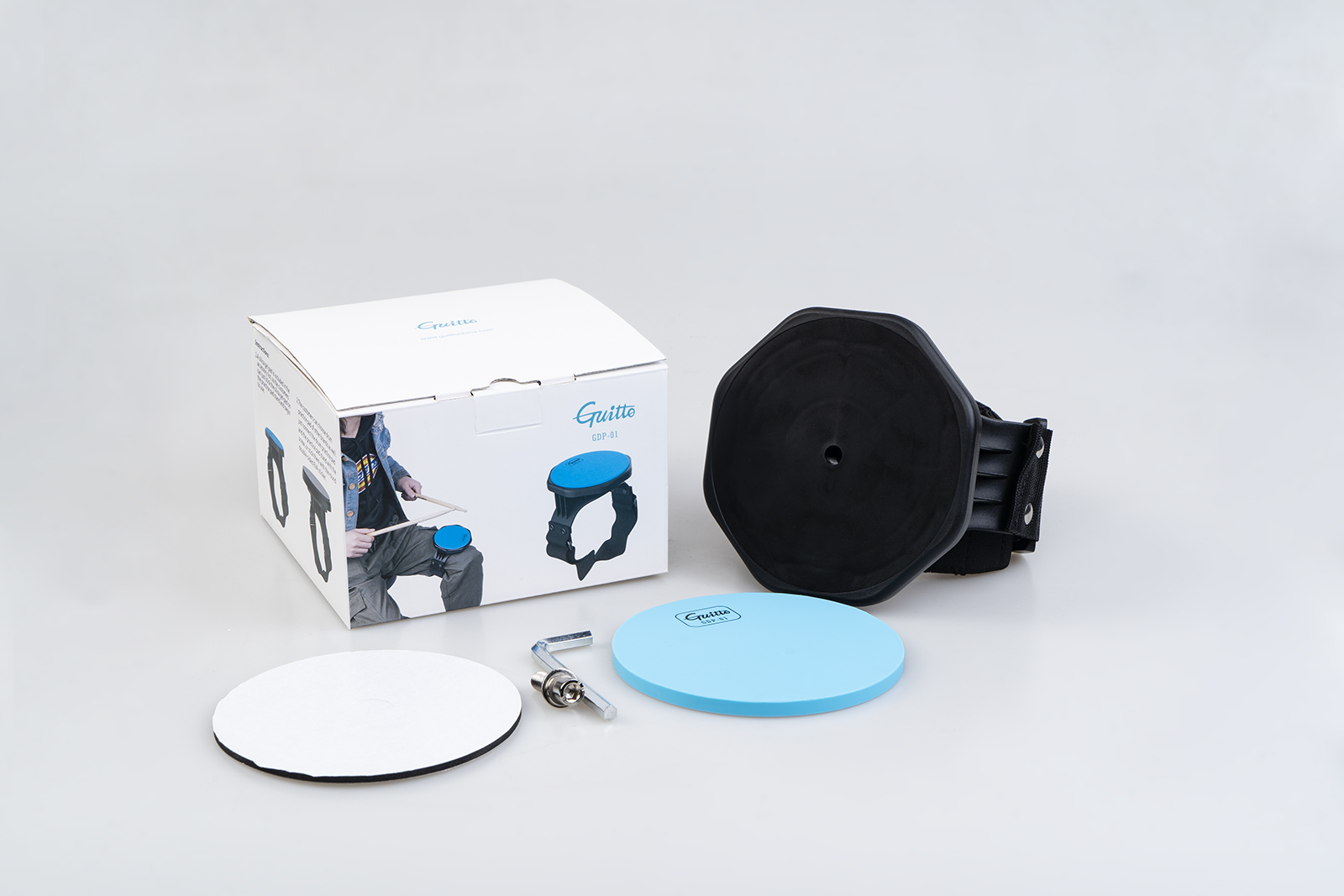 Guittо GDP-01 — це мобільний тренувальний пед, створений для максимально зручних занять у будь-яких умовах. Його можна легко закріпити на нозі за допомогою регульованого ременя з липучкою. Такий формат дозволяє тренуватися буквально всюди — вдома, на вулиці або в дорозі. Силікагелева поверхня забезпечує еластичність і реалістичний відскок паличок. Це допомагає розвивати точність, швидкість і контроль ударів. Компактний розмір 4 дюйми робить пед максимально портативним. Незважаючи на невеликий формат, він забезпечує комфорт під час гри. Матеріали відзначаються довговічністю та стійкістю до зношування. Тиха робота дозволяє займатися без зайвого шуму. Це ідеальний вибір для барабанщиків, які цінують мобільність і ефективність тренувань.