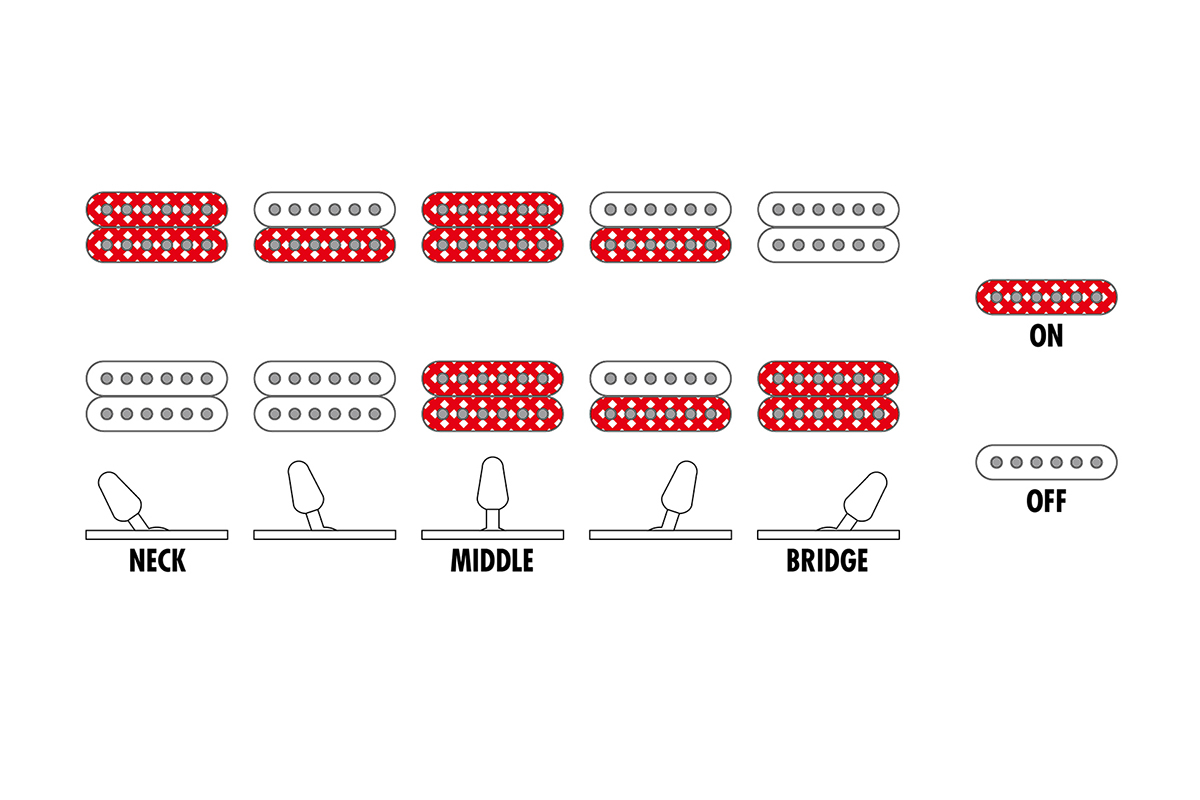 Два пасивні керамічні хамбакери Classic Elite формують насичений звук із глибокими низами та виразною серединою. П’ятипозиційний перемикач дозволяє отримати різні варіанти тембру — від м’якого чистого до агресивного перевантаження. Така конфігурація підходить для року, металу, альтернативи та інших сучасних стилів.