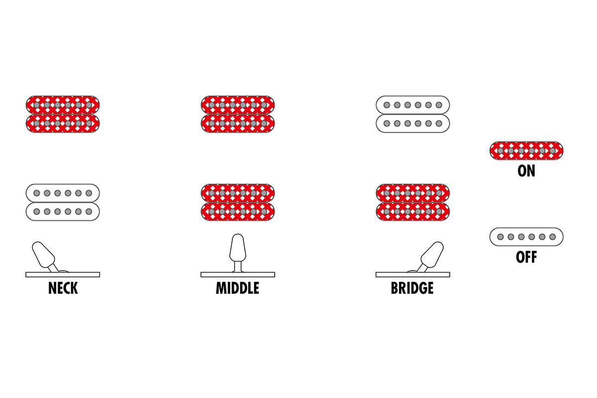 - Звукознімачі: H-H, 2 × DiMarzio Blaze (Passive/Ceramic)
