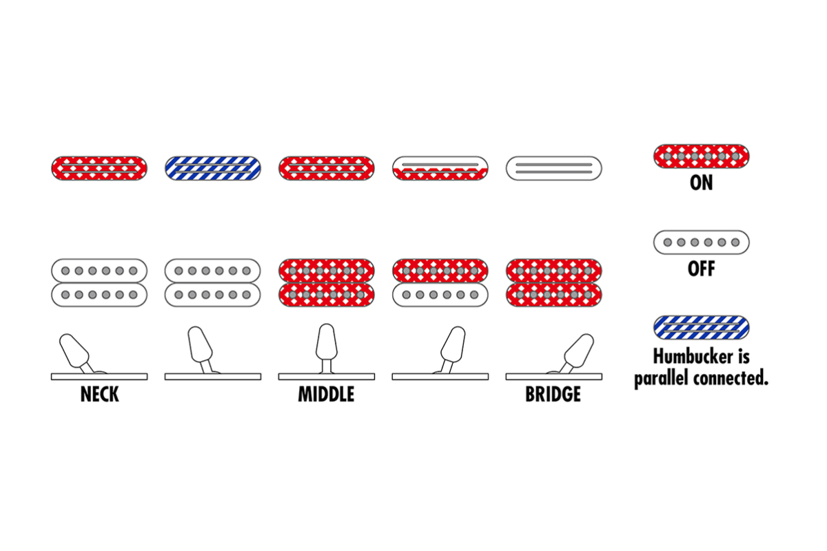 Комбінація хамбакерів Infinity R і V8 створює щільний і динамічний звук. Вони добре передають як чисті партії, так і агресивний драйв. Звучання залишається чітким навіть при високому рівні перевантаження. П’ятипозиційний перемикач дозволяє отримати різні варіанти тембру. Це універсальний інструмент для різних стилів музики.