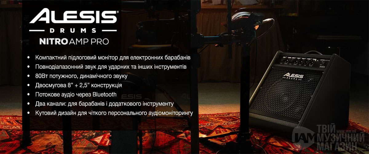 Alesis Nitro Amp Pro - це компактний підсилювач для електронних барабанів потужністю 80Вт, оснащений 8-дюймовим НЧ динаміком для точного відтворення низьких частот і 2,5-дюймовим твітером для яскравих високих частот. Усе це поєднано у зручному форматі підлогового монітора, який також підтримує Bluetooth-аудіо зі з окремим регулятором гучності.