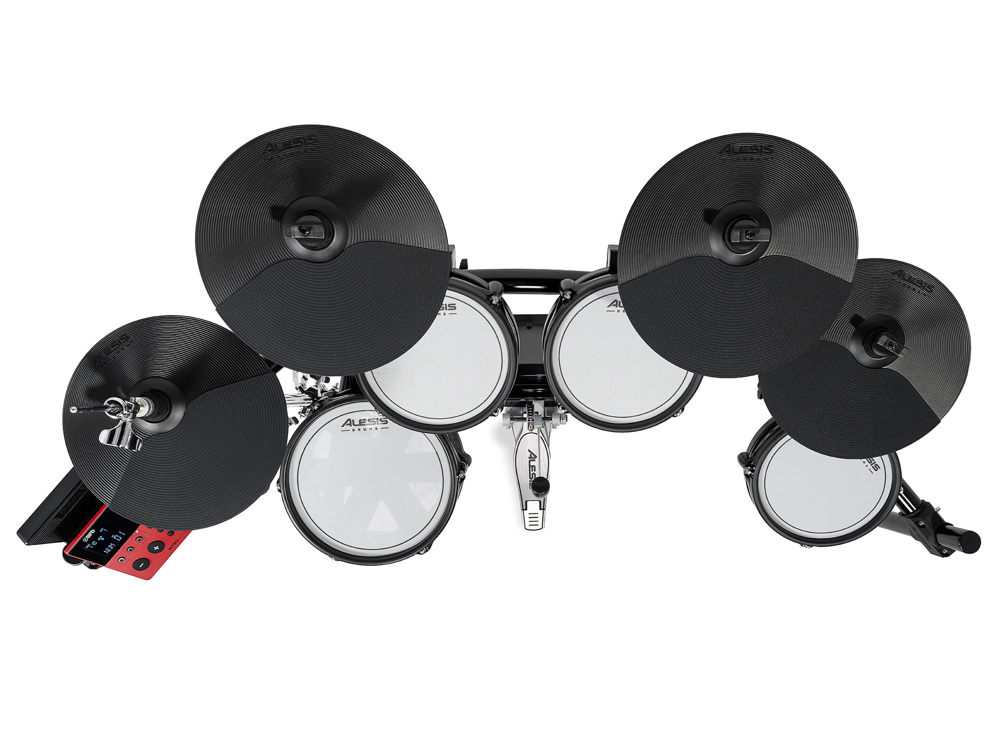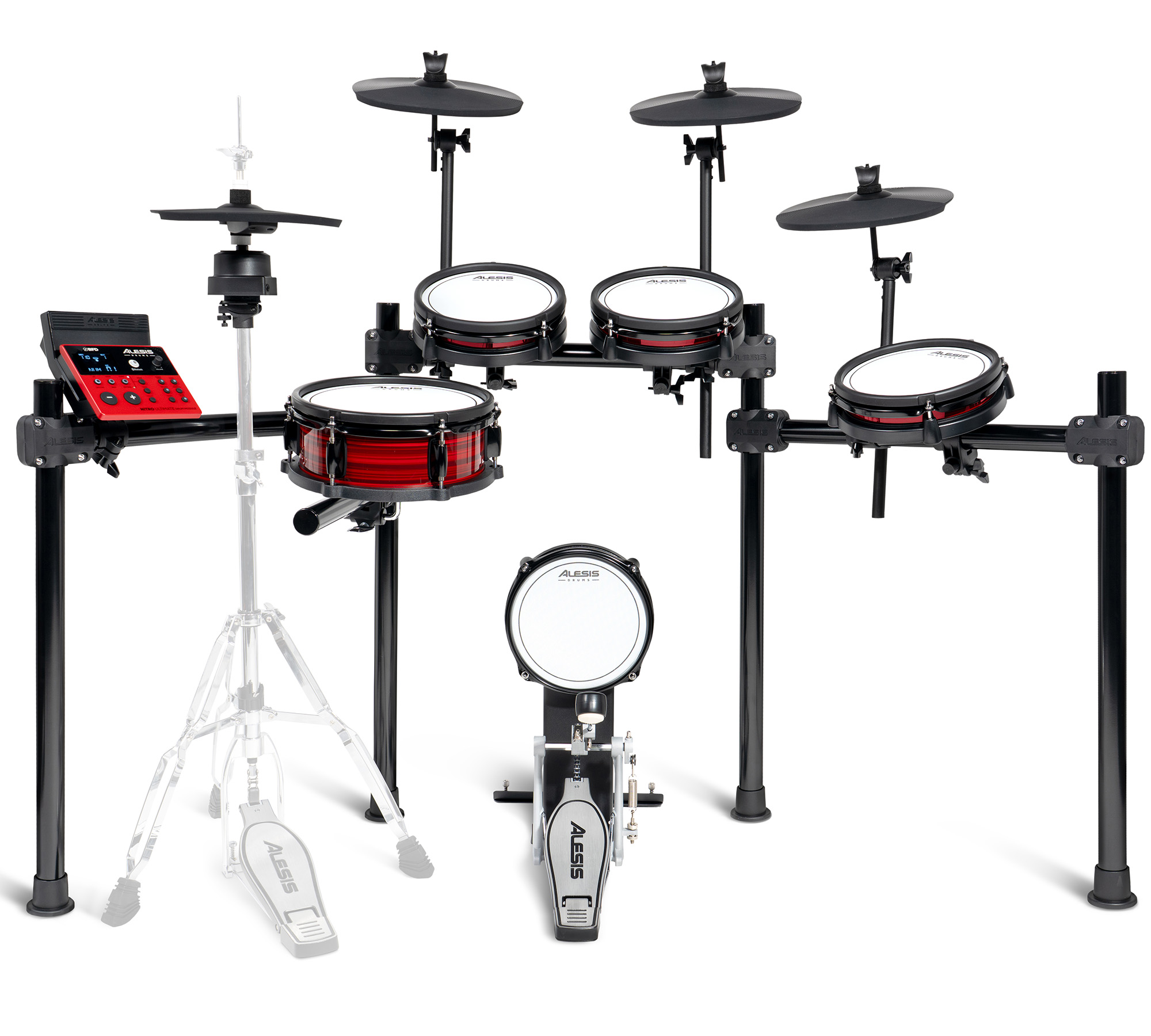 - Комплектація: Модуль Nitro Ultimate, 10" сітчастий двозонний глибокий пед робочого барабана із металевим ободом, 3х 8" сітчасті двозонні педи томів, 8" сітчастий вертикальний пед бас-барабана, 2х 10” пед крешу (із заглушенням), 10” пед райду (із заглушенням), 10” пед хай-хету з контролером на стійці, педаль для бас-барабана, посилена сталева рама з 4 ніжками, блок живлення, барабанні палички, барабанний ключ