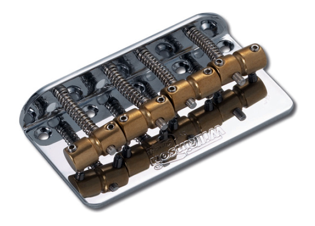 Бридж для 4-струнної басгітари, ліцензована копія Wilkinson, 4 сідла з міді, відстань між струнами 19мм, 5 гвинтів, колір: хромований (CR)