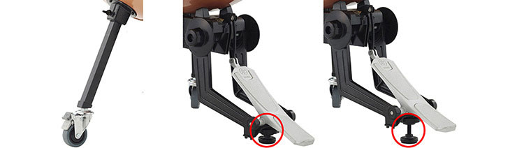 Нові, збільшені з 50мм до 75мм колеса полегшують переміщення інструмента, а поліпшені блокатори запобігають руху литавр під час використання педалі.
