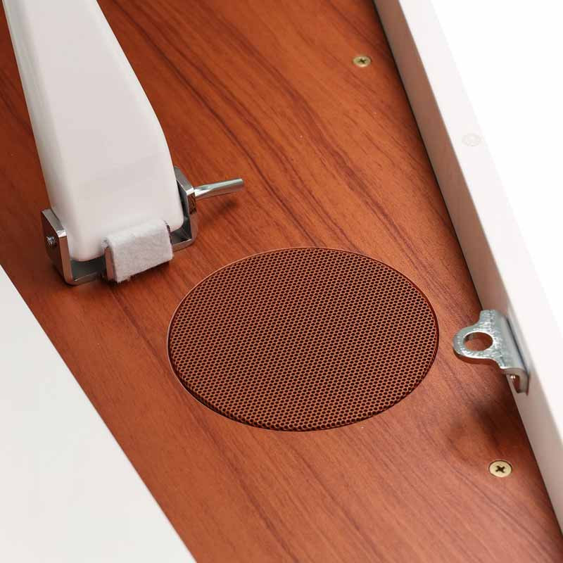 Kurzweil CUP G1W обладнаний потужною 4-динаміковою стереосистемою загальною потужністю 50 Вт. Два низькочастотні та два високочастотні динаміки створюють збалансоване й об’ємне звучання. Акустика передає як глибокий бас, так і прозорі високі частоти. Навіть у великій кімнаті інструмент звучить переконливо та наповнено. Стереоефект дозволяє відчути просторову ширину інструмента. Для занять у тиші передбачено два виходи для навушників. Звук у навушниках залишається природним і комфортним. Акустична система оптимізована для тривалих занять без втоми слуху. CUP G1W підходить для домашніх концертів і репетицій. Це повноцінне рояльне звучання без зовнішніх колонок.