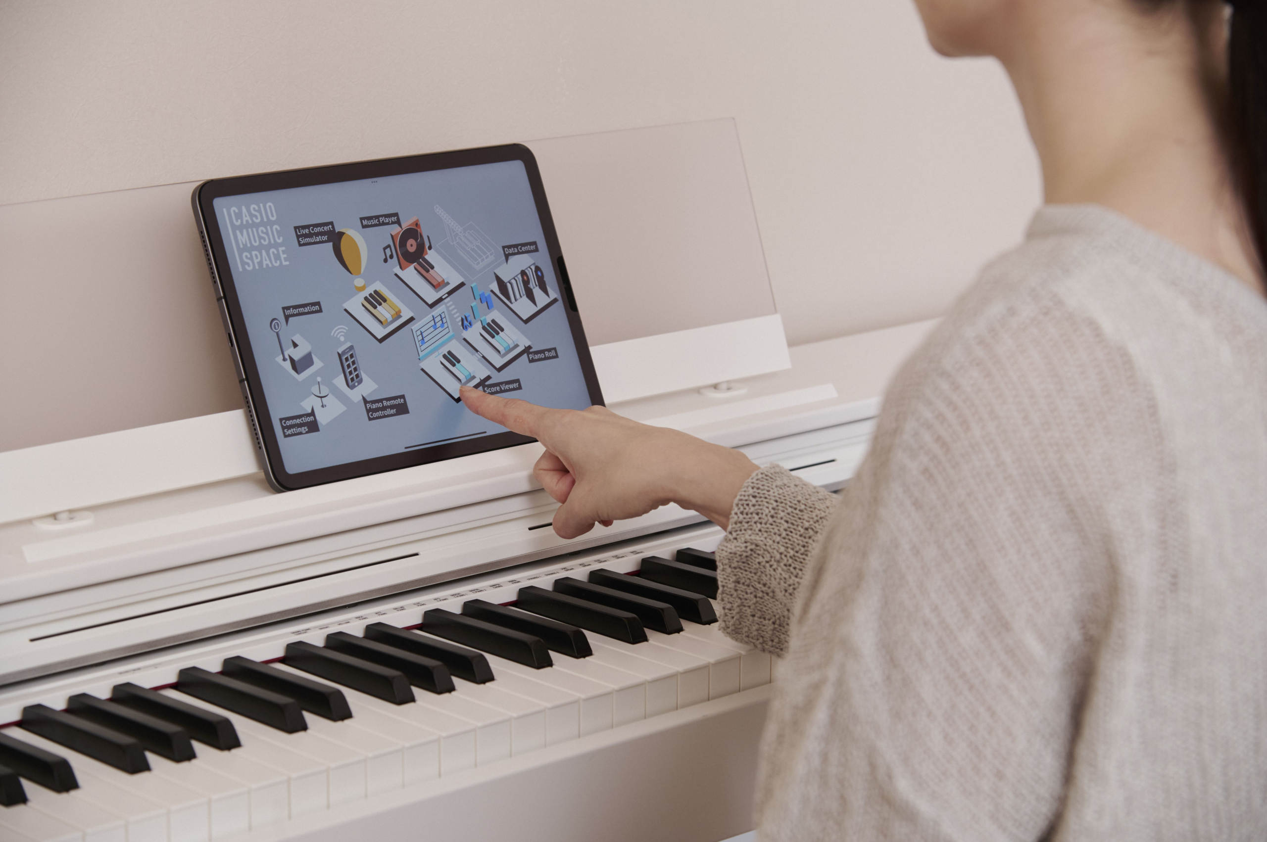 Casio Celviano AP-S200 підтримує бездротове підключення через Bluetooth MIDI та Audio за допомогою комплектного адаптера. Інструмент легко інтегрується зі смартфонами та планшетами для навчання й творчості. Застосунок CASIO MUSIC SPACE відкриває доступ до інтерактивних уроків, налаштувань і керування тембрами. Вбудований MIDI-рекордер дозволяє фіксувати ідеї та аналізувати власну гру. Функція аудіозапису на USB-накопичувач дає змогу зберігати виступи у форматі WAV. Наявність USB-портів забезпечує просте підключення до комп’ютера. Інструмент має метроном, транспонування та бібліотеку вбудованих композицій для навчання. Підтримка трьох педалей розширює виконавські можливості. AP-S200 відповідає вимогам сучасного музиканта. Це фортепіано, яке росте разом із вашим рівнем гри.