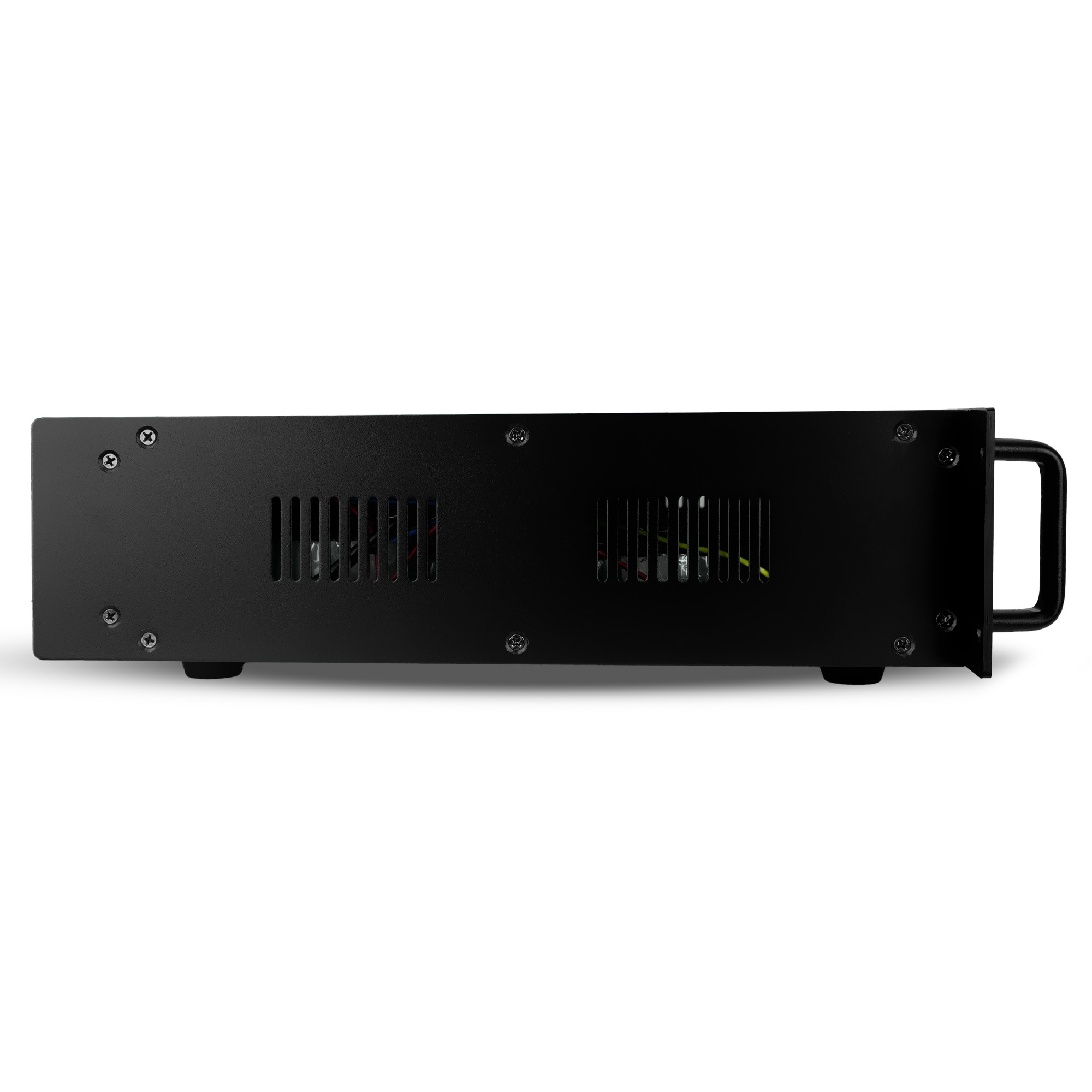 Трансляційний підсилювач потужності 120Вт. Входи: 3 х мік., 3 х AUX. Виходи: 4-16 Ом, 3 зони з незалежним регулюванням 70-100В, 1 х AUX. Діапазон частот 40 Гц-18 кГц±0.5 дБ. Відношення сигнал/шум > 70 дБ. Програвач USB/SD. Розмір: 482х370х88 мм. Вага 9 кг.