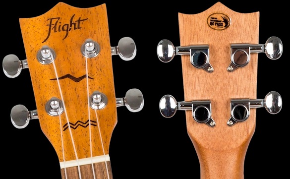 Головка грифа має фірмовий дизайн бренду Flight. Вона оснащена хромованими кілками з редуктором, що забезпечують плавне та точне налаштування. Така система допомагає інструменту стабільно тримати стрій. Дизайн головки гармонійно доповнює класичний вигляд укулеле.