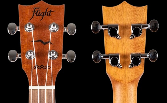Головка грифа має характерний дизайн бренду Flight. Вона оснащена якісними кілками з плавним ходом для точного налаштування. Така конструкція допомагає інструменту стабільно тримати стрій. Дизайн головки гармонійно доповнює загальний вигляд укулеле.