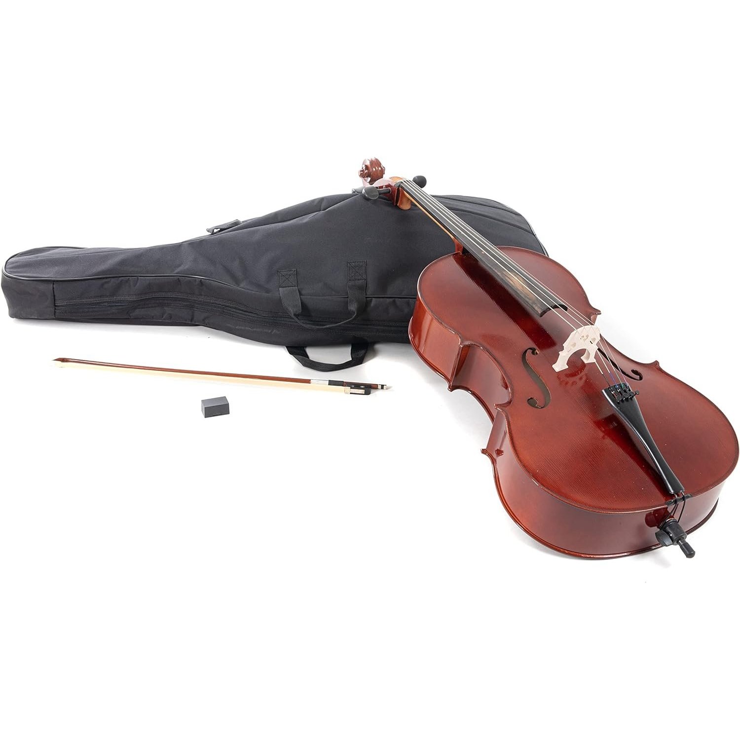 До комплекту входить смичок,чохол та каніфоль. Смичок виготовлений з натурального кінського волосся. Чохол виготовлений з матеріалу Nytex. Цей матеріал поєднує в собі легкість і високу міцність, має водовідштовхувальні властивості, що дозволяє захищати інструмент від дощу або вологи, коли його перевозять. Хоча Nytex є водонепроникним, він також може пропускати повітря, що запобігає накопиченню вологи всередині чохла. Він досить стійкий до механічних пошкоджень, таких як порізи або розриви, тому ефективно захищає інструмент. Також, чохол має кишені для смичка і аксесуарів захищає інструмент під час транспортування. Всі необхідні частини та аксесуари входять в комплект, включаючи налаштування інструменту, що робить цей набір готовим до гри відразу після покупки. Цей набір є відмінним вибором для тих, хто шукає доступний за ціною якісний інструмент з базовою комплектацією для гри на віолончелі.